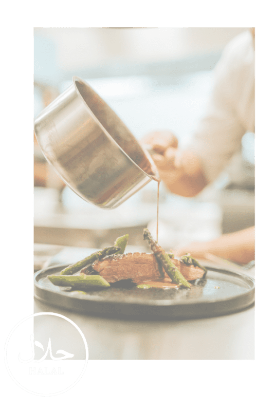 pratos preparados com Carne 100% Halal.